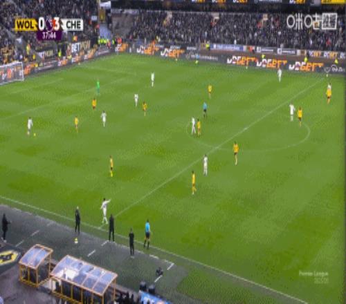 第38分钟,库库助攻,帕尔默包抄破门完成戴帽,切尔西3-0领先狼队!