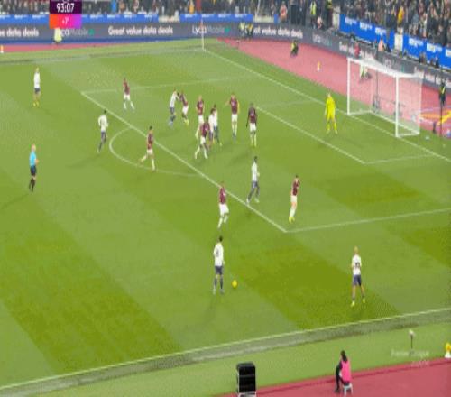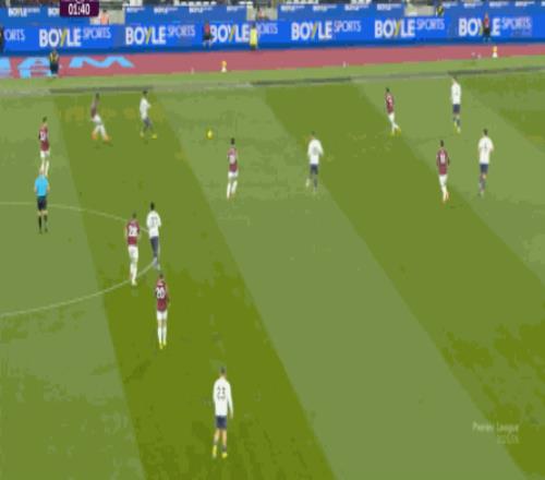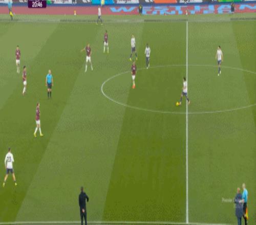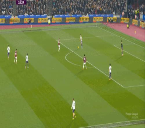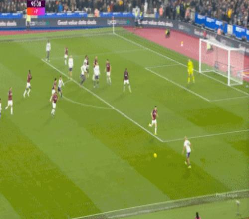 而这种身体层面带来的问题,不仅会出现在有球的时候,也会出现在无球的时候,比如这次高位逼抢,实际上只有布鲁诺一人有效参与,于是西汉姆联后卫可以先抬头观察,再低头起脚,便和鲍文一起制造了前场的定位球: