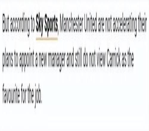 据英国天空体育报道,曼联并未加快任命新主帅的进程,仍不认为卡里克是该职位的最热门人选。