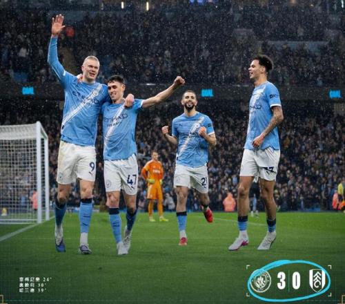 英超第26轮曼城坐镇主场以3-0横扫富勒姆,将与榜首阿森纳的分差缩小至3分,随后枪手爆冷失分,曼城就有可能取而代之。此役,上半场塞梅尼奥传射建功,奥赖利、哈兰德先后破门,蓝月亮早早锁定胜局。下半场富勒姆虽竭力反扑却难破曼城防御的铜墙铁壁,最终瓜帅的球队赢球的同时将两项英超历史纪录收入囊中。