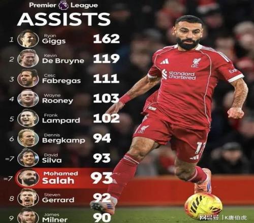 在最近6场的比赛中,萨拉赫只打进了2个进球,但却贡献了4次助攻,不得不说他正在积极转变自己在场上的角色定位,既然无法再继续承载那个绝对爆点,那么后撤位置成为组织者也未尝不可。据统计,萨拉赫目前已经完成了93次助攻,这也让他排在了英超历史助攻榜单的第7名,甚至是比利物浦传奇队长杰拉德还要多1次助攻。