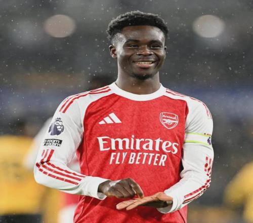 萨卡进球后的庆祝动作暗示他已经和阿森纳签字续约。