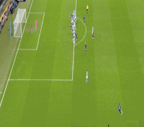 第26分钟,塞梅尼奥策动进攻,哈兰德游走到了边路,化身多库下底传中,奥莱利头球破门。