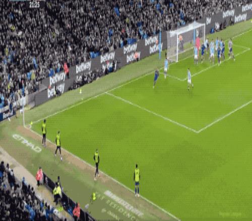 第14分钟,曼城打出快速反击,哈兰德巧妙做球,马尔穆什送出助攻,奥莱利打破僵局。