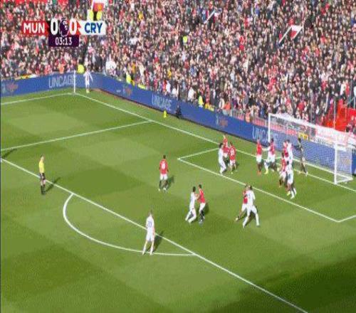 第4分钟,布伦南·约翰逊开出左侧角球,曼联中卫约罗看球不看人,被水晶宫中卫拉克鲁瓦一个急停摆脱。后者原地起跳将球顶入远角。0比1。