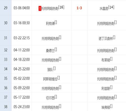 对热刺更不利的是,最后9轮比赛,他们还要分别做客对阵利物浦、维拉和切尔西3大强队,这些对手都要抢分竞争欧冠席位,肯定不会对热刺脚下留情,此外热刺还要在主场对阵诺丁汉森林,一旦输给对手,这将又是一场灾难。现在的热刺,想保级实在太难了,他们已经到了在英超时代最危险的时候了,再不提升自己的状态,下赛季就得去英冠争冠了!