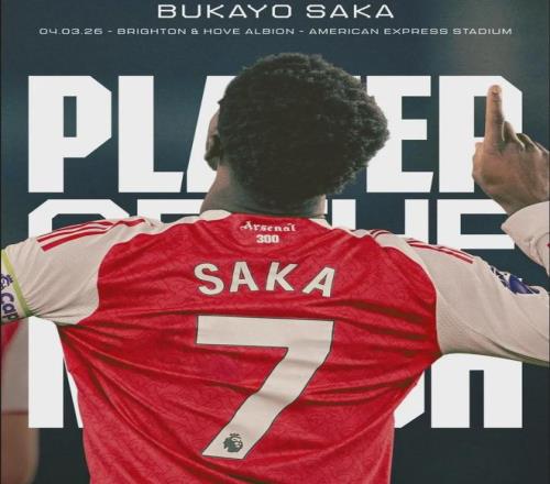 官方:萨卡被阿森纳球迷票选为了本场比赛最佳球员!