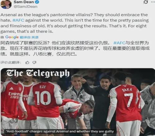 其实这个问题我认为必须说一说。不仅是许策勒,阿森纳现在有点“英超公敌”的意思,除了枪迷,可能其他对手、媒体、评论员等等都不希望这支球队夺冠,而且几乎是排山倒海一面倒的抨击这支球队的球风,BBC这样严肃的媒体居然写出了“用丑陋来形容这支阿森纳简直是侮辱丑陋”这样的文章,说实话已经有点扭曲……