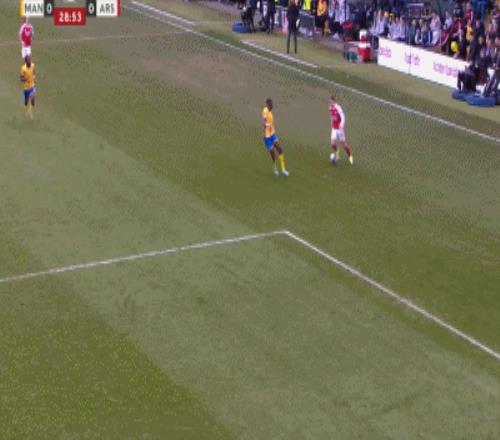 第64分钟,阿森纳打出边中结合,可惜门前近在咫尺的打门,被曼斯菲尔德球员诺勒门线解围。