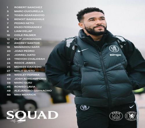 切尔西官方公布了欧冠1/8决赛首回合客战巴黎圣日耳曼的比赛大名单,帕尔默领衔,埃斯特旺、吉滕斯缺阵。