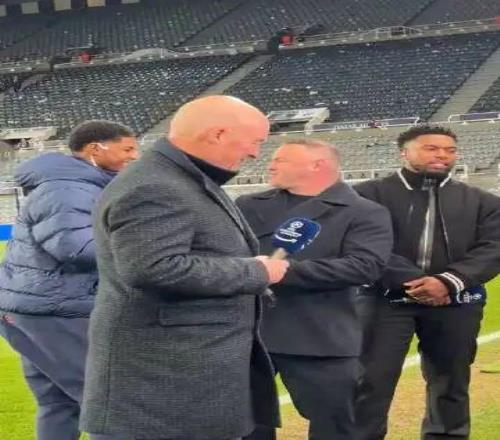 随巴萨来到圣詹姆斯公园球场客战纽卡斯尔的拉什福德在赛前上前和鲁尼打招呼