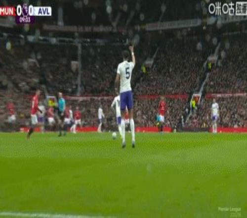 第42分钟,沃特金斯在裁判哨响之后选择射门,被出示黄牌