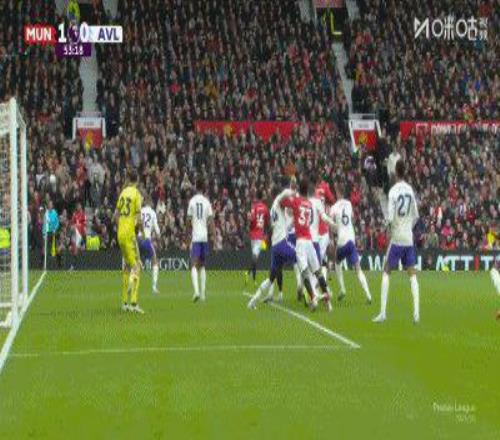 第64分钟,维拉角球,曼联解围不远,客队形成连续进攻之势,最终由巴克利禁区内重炮破网。随后VAR介入,确认站在越位位置的阿马杜·奥纳纳没有碰到皮球,进球有效,1比1。
