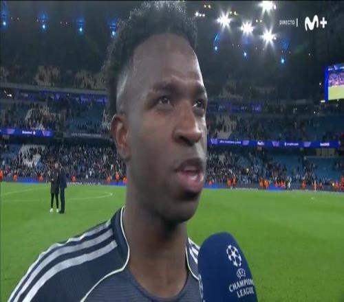 帮助球队在欧冠1/8决赛次回合客场2-1击败曼城后,皇马前锋维尼修斯接受了Movistar+的采访。