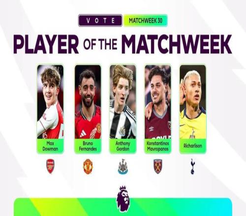 北京时间3月17日,英超官方公布了第30轮比赛中的最佳球员候选名单,其中道曼、B费、戈登、马夫罗帕诺斯、里沙利松在列。