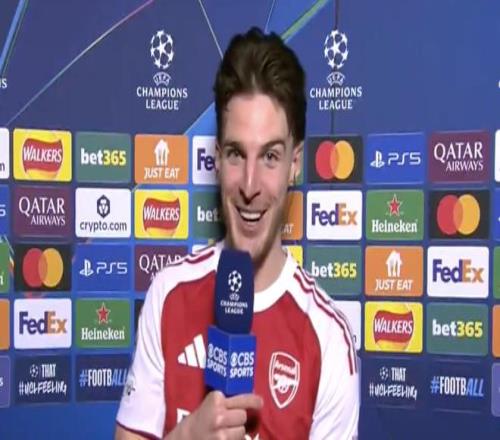 在欧冠1/8决赛淘汰勒沃库森后,阿森纳中场赖斯接受了CBS体育的连线采访。