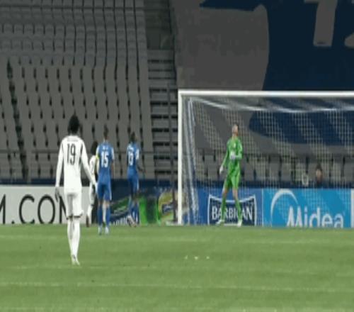 第76分钟,申花差点攻破对手大门!陈晋一前场被犯规,申花获得定位球,替补登场的高天意将球旋向禁区,1米95的盖伊高高跃起头球攻门,但他的头球擦着立柱出了底线!