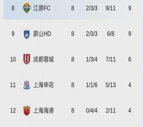 把目光投向整个亚冠积分榜:上海申花1胜1平6负积4分,成都蓉城1胜3平4负积6分。中超BIG3,合计仅取得2场胜利,包揽东亚区倒数前三。