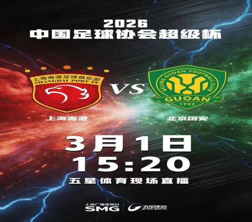 北京时间3月1日,2026赛季中国足坛的第一场正式比赛超级杯,就将在上海海港和北京国安之间展开。五星体育将从15:20起带来本场比赛的直播,敬请关注!