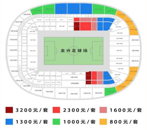 龙兴足球场散球迷套票价格及相关区域。 重庆铜梁龙俱乐部供图