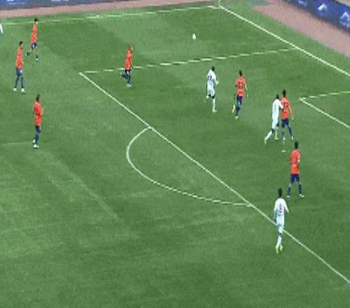 第80分钟,陈彬彬左路兜传,姆本扎插上获得单刀,抽射击中立柱随后被吹越位。
