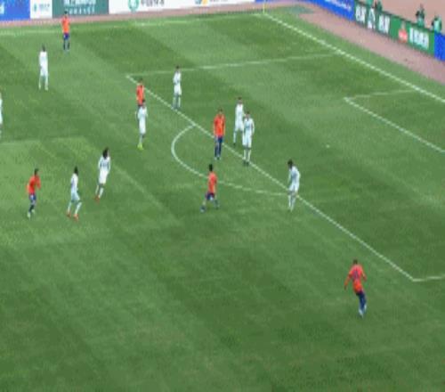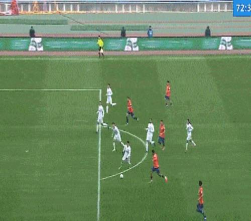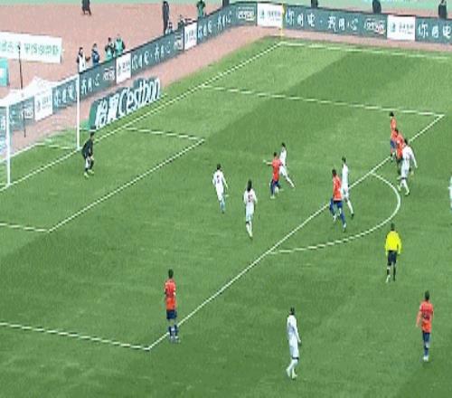 第73分钟,克雷桑左路推射被挡,刘洋跟进大力抽射被韩镕泽挡出。