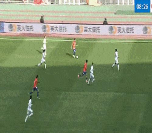 第8分钟,泰山队发起反击,卡扎伊什维利分球禁区内右侧,谢文能不停球直接推射打进球门左下死角,山东泰山1-0领先辽宁铁人。