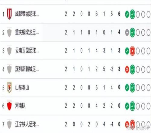 另外,升班马重庆铜梁龙开局表现得也相当不错,前两轮拿到4分,一度短暂登顶积分榜。本轮结束后,他们退居第二。云南玉昆与深圳新鹏城目前同积3分,分别位列第三和第四。几个中超新势力的集体冒头,主要得益于他们没有被罚分。