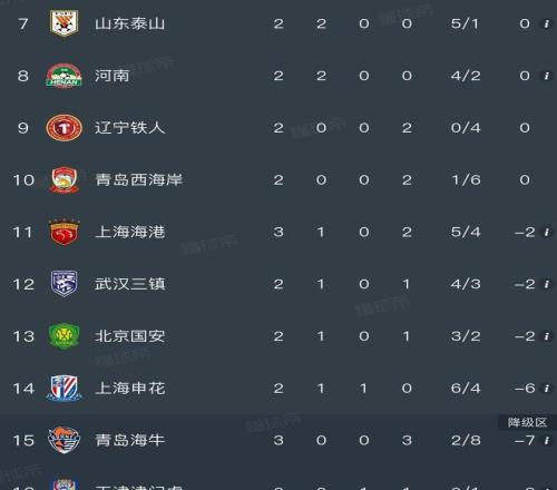 处境最为堪忧的是青岛海牛,三战全负,虽打入两球,却狂丢八球,在积分榜底部深陷泥沼。