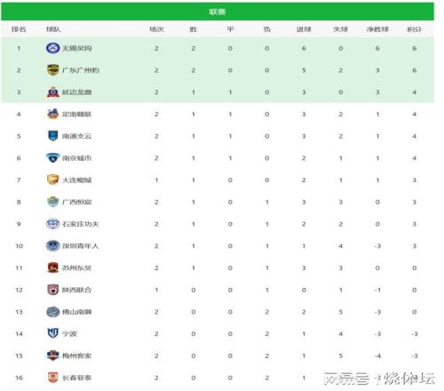 广东广州豹客场全取3分,迎来联赛2连胜,目前以净胜球劣势排名积分榜第二。佛山南狮上赛季为保级奋战,本赛季开局遭遇2连败,看起来又要继续为保级奋战了。