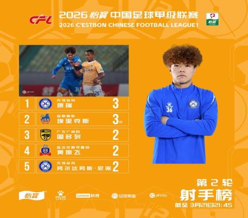 3月22日,中超、中甲联赛官方分别发布了2026赛季中超联赛、中甲联赛最新射手榜。