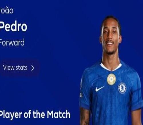 三球一助,若昂佩德罗当选切尔西客战维拉全场最佳球员