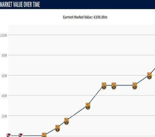 本赛季费尔明身价3次上涨,从5000万欧升到了1亿欧