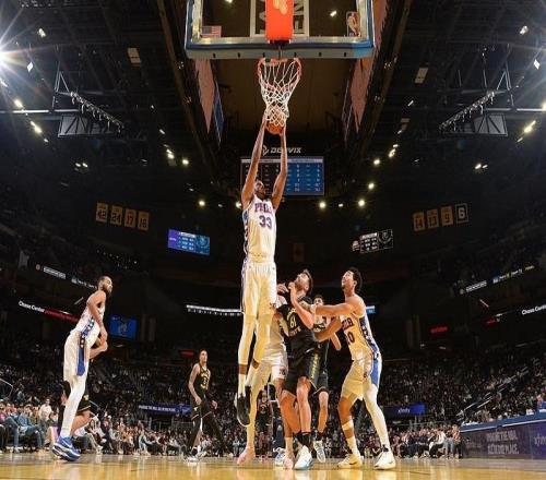 76人八人上双11394勇士,埃奇库姆25+7+7,库里、恩比德均缺阵