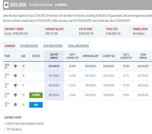 布伦森提前4年索要顶薪美记暗示他被坑降薪1.13亿33岁将陷泥沼