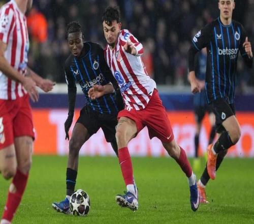 马竞客场33遭布鲁日绝平阿尔瓦雷斯、卢克曼破门