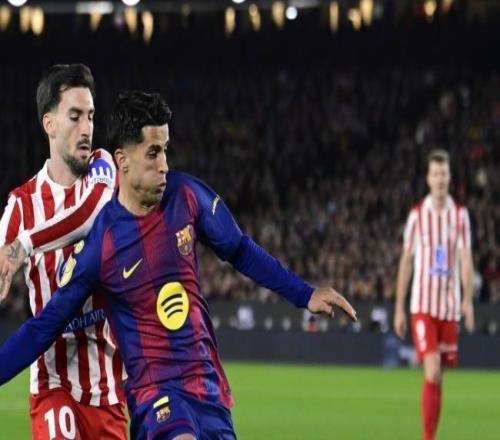 北京时间3月8日西班牙足球甲级联赛第27轮,毕尔巴鄂竞技主场对阵巴塞罗那。上半场,坎塞洛刚开场解围击中横梁,戈...