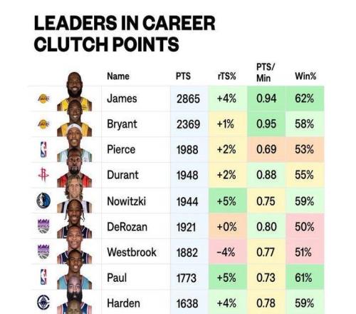 詹姆斯的关键时刻总得分历史第一!胜率也是历史第一!