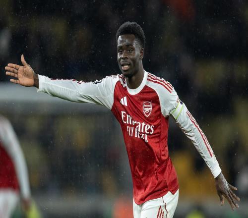 英超第31轮客场挑战狼队的比赛中,萨卡开场仅5分钟就为阿森纳首开记录。在取得这个进球之后,萨卡做出了一个在...