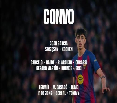 北京时间2月16日,巴塞罗那官方公布了明天凌晨4点客战赫罗纳的大名单,莱万、亚马尔领衔,拉菲尼亚回归。门将:霍安...