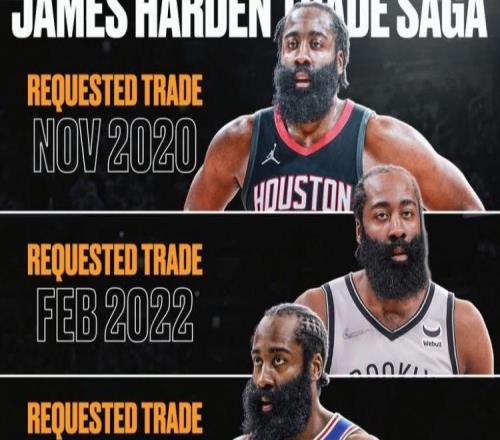 哈登被曝申请离队美媒晒四次交易申请图:哥们儿在哪都不开心
