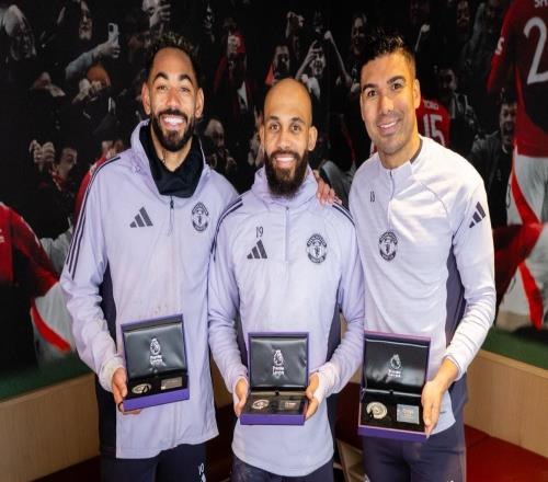 在分别达成英超特定进球、出场数里程碑后,曼联球员卡塞米罗、姆伯莫和马特乌斯-库尼亚获赠纪念奖章。卡塞米...