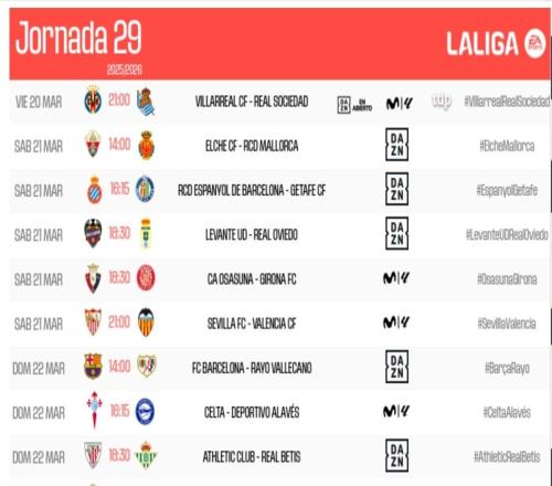 西甲第29轮开赛时间:马德里德比3月23日400开战