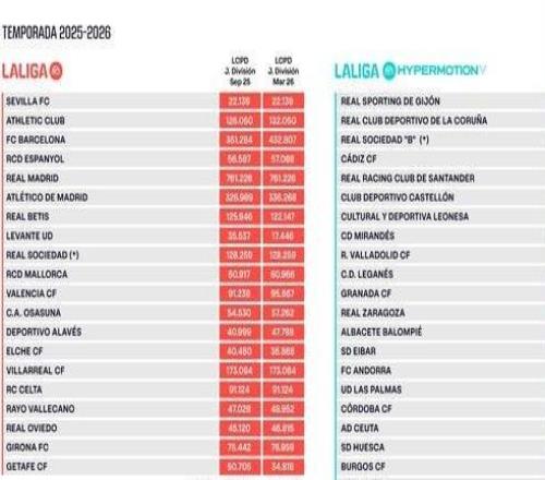 北京时间3月3日,西甲官方公布了各支球队的最新工资帽,其中巴萨的工资帽从3.51亿欧元提高到4.32亿欧,马竞的工资...