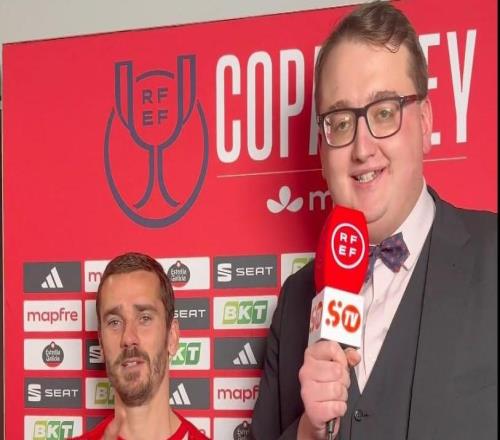 西班牙国王杯半决赛首回合,马竞主场4-0战胜巴萨,本场比赛打入1粒进球的格列兹曼赛后接受了SportyTV的采访。这...