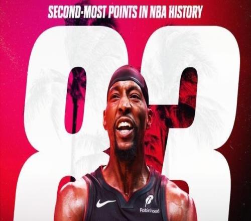 今天的NBA,又一次见证历史。热火中锋阿德巴约单场砍下83分,超越科比,成就历史单场得分第二,仅次于张伯伦(100分)。...