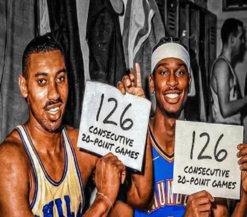 追平张伯伦!SGA连续126场20+成历史首人,远古神迹也挡不住他