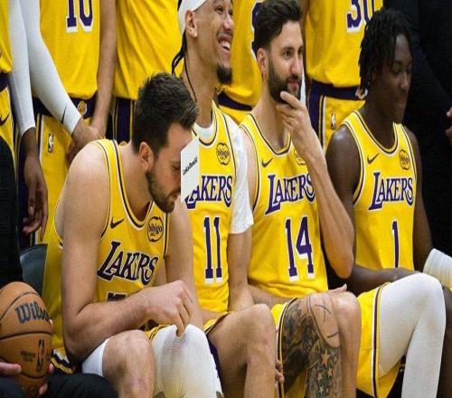 湖人拍摄全家福!东契奇搞怪把名字贴额头詹姆斯布朗尼笑容满面