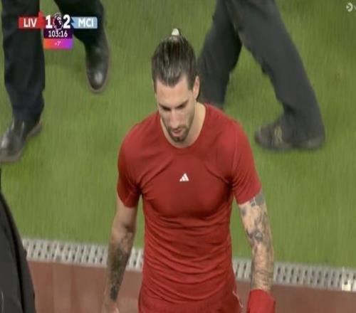 战曼城染红,索博斯洛伊利物浦生涯首次领到红牌
