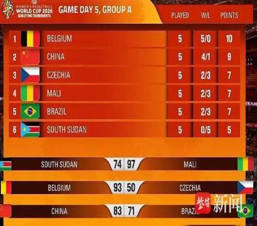 中国女篮8371战胜巴西队以4胜1负的成绩晋级世界杯正赛